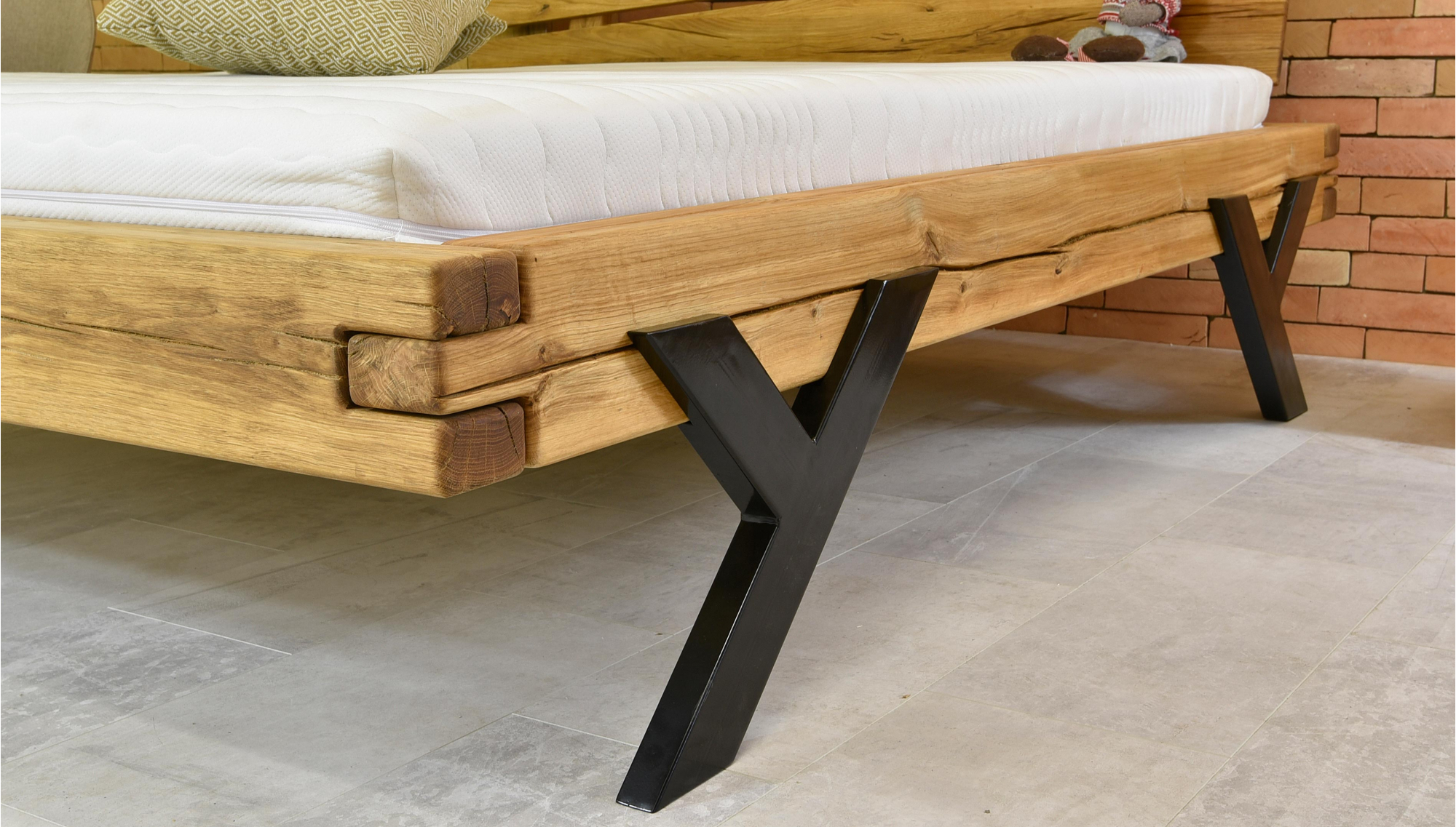 Masivní manželská postel model laura vyrobena z poctivých dubových trámů dostupná ve vnitřní šířce 160 x 200, 180 x 200 . Postel je vyrobeno z dubových trámů o rozměru až 16 x 9 cm. Manželská postel mě kovové nohy v černé matné barvě. Právě spojení dřeva a kovu, dělá z modelu moderní a nadčasovou manželskou postel do různých interiérů. Součástí postele je pevný dřevěný rošt, který je k posteli grátis do rámu je možné vložit i lamelový rošt. Nádherná luxusní dubová postel laura vyrobena v industriální designu z přírodního materiálu dřevo dub.