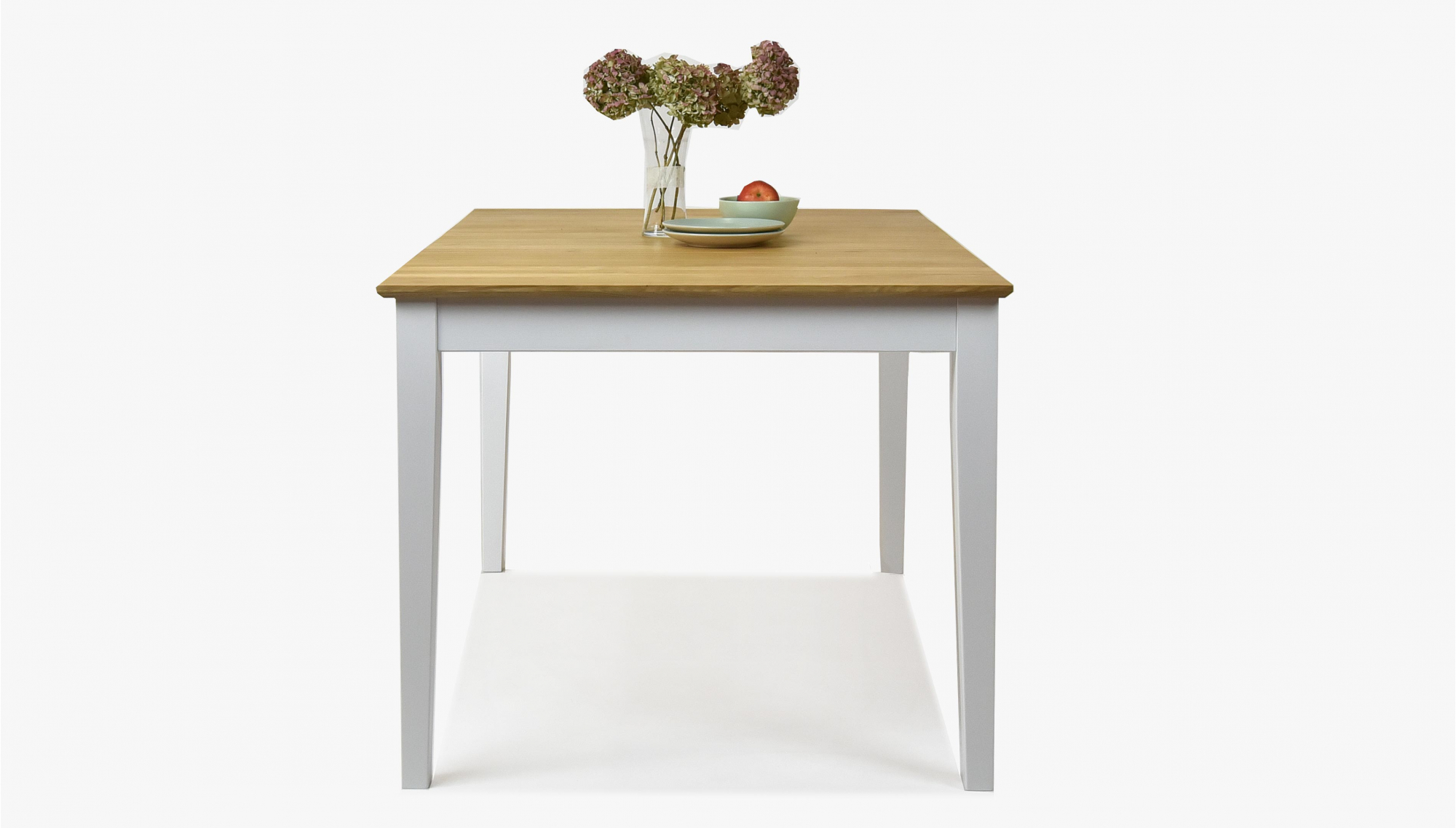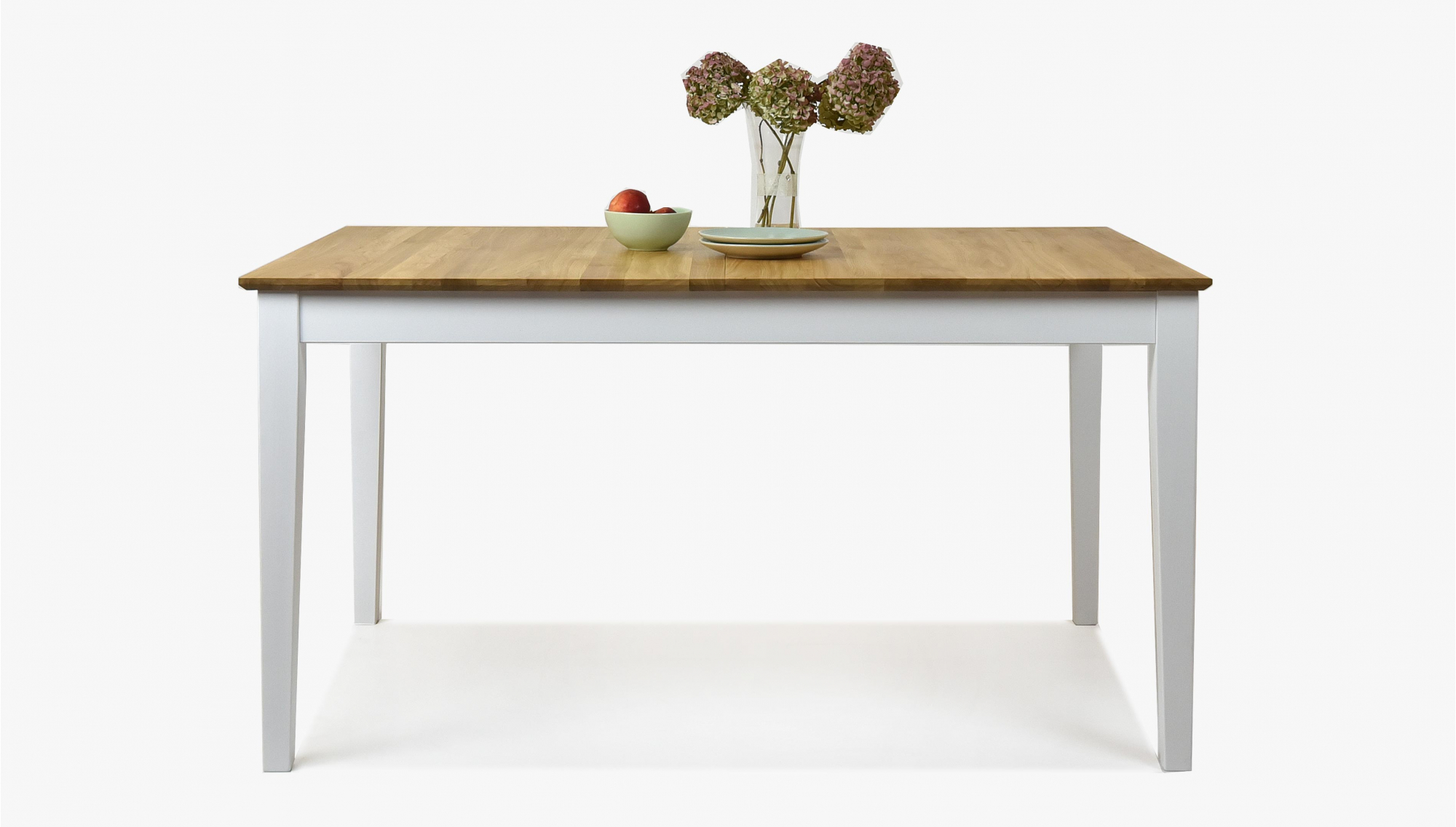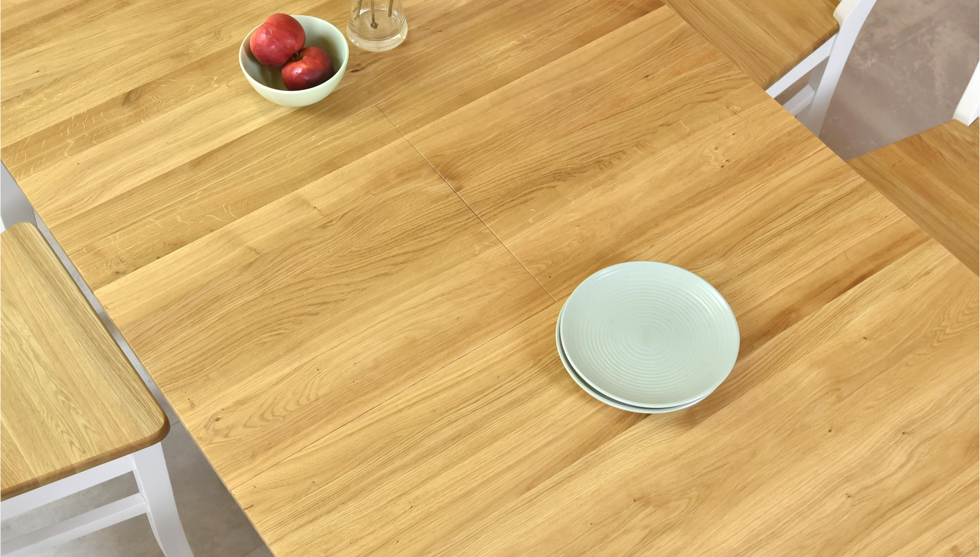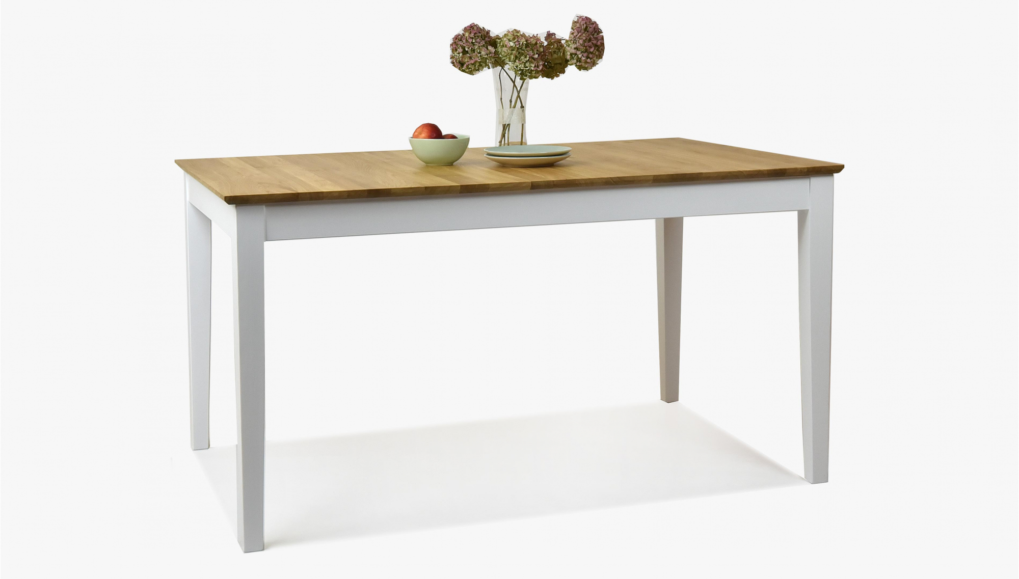 Klappbarer Esstisch im Landhausstil. Die Tischplatte besteht aus ausgezeichnetem Eichenholz mit einer Plattendicke von bis zu 2 cm. Der Rest des Tisches besteht aus Eschenholz, das mit weißer Deckfarbe behandelt wird. Die obere Platte ist mit der italienischen Markenölmarke Borma wachs behandelt. Der Tisch wird in einer Demonstration mit einer sehr einfachen Montage geliefert. Die Grundgröße des Tomino-Tisches beträgt 140 x 90 cm, nach dem Layout 180 x 90 cm. Das für die Produktion verwendete Holz ist FSC-zertifiziert.