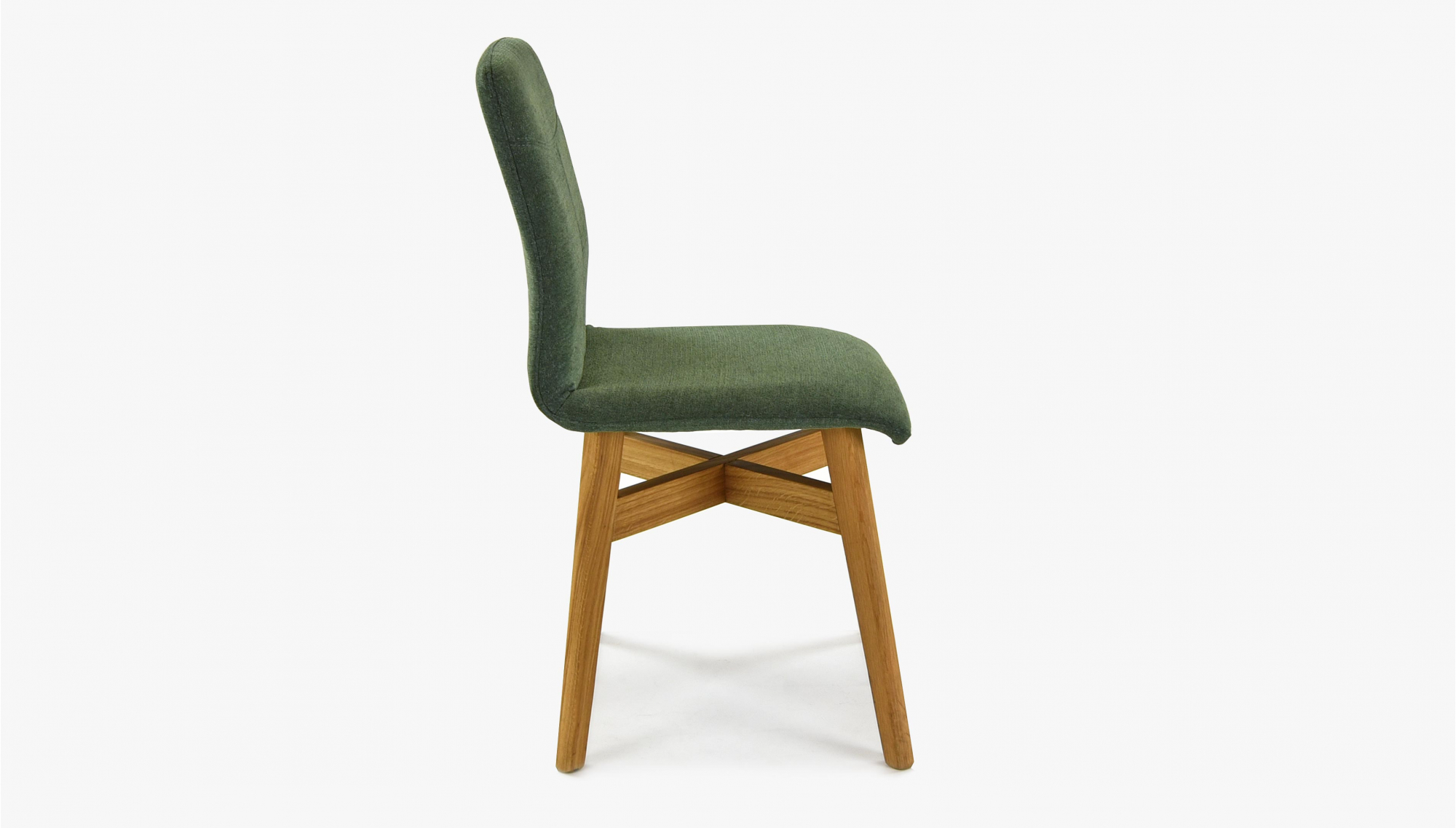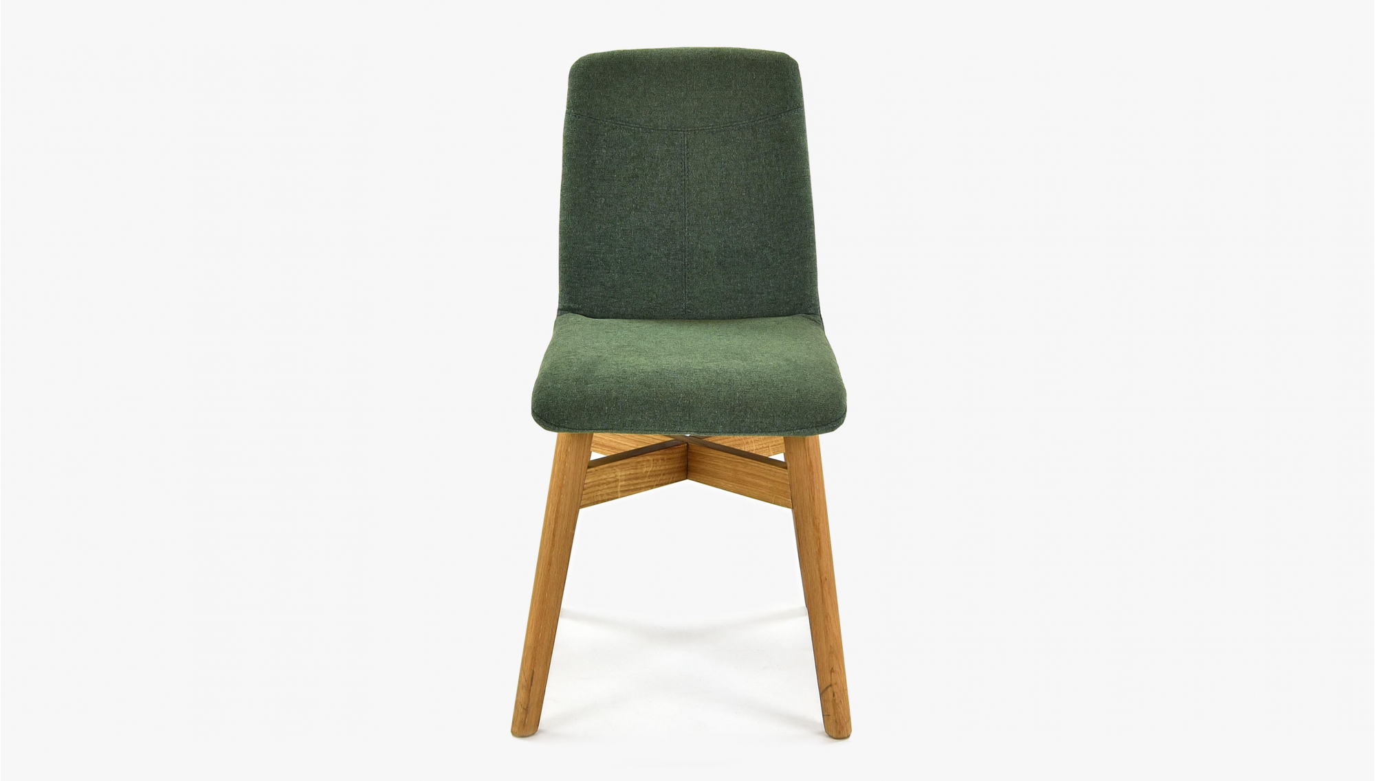 Dining chair with easy clean fabric, green color. The chair comes pre-assembled with oak legs treated with natural oil.