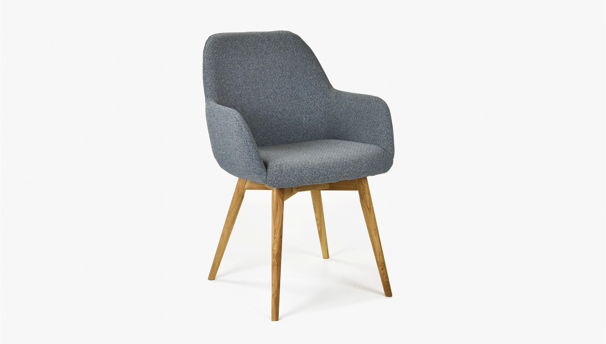 Wygodne krzesło z podłokietnikami do jadalni lub kuchni. Krzesło do jadalni Sky ma wspaniały skandynawski design, nogi wykonane są ze szczerego drewna dębowego. Drewno jest traktowane tylko organicznym olejem Woca. Krzesło wykonane w skandynawskim stylu ma bardzo wygodne siedzisko, które jest już zmontowane. SKY jest dostępne w kolorze jasnoszarym i ciemnoszarym z nutą niebieskiego. Krzesło ma zalecane obciążenie do 110 kg. Piękne krzesło, które zachwyci Cię swoim komfortem i ponadczasowym designem.